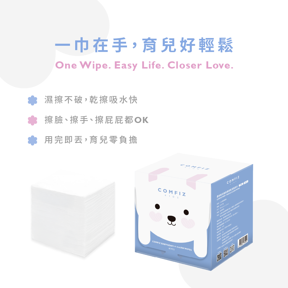品名:康菲COMFIZ嬰兒棉柔親膚乾濕兩用巾60抽