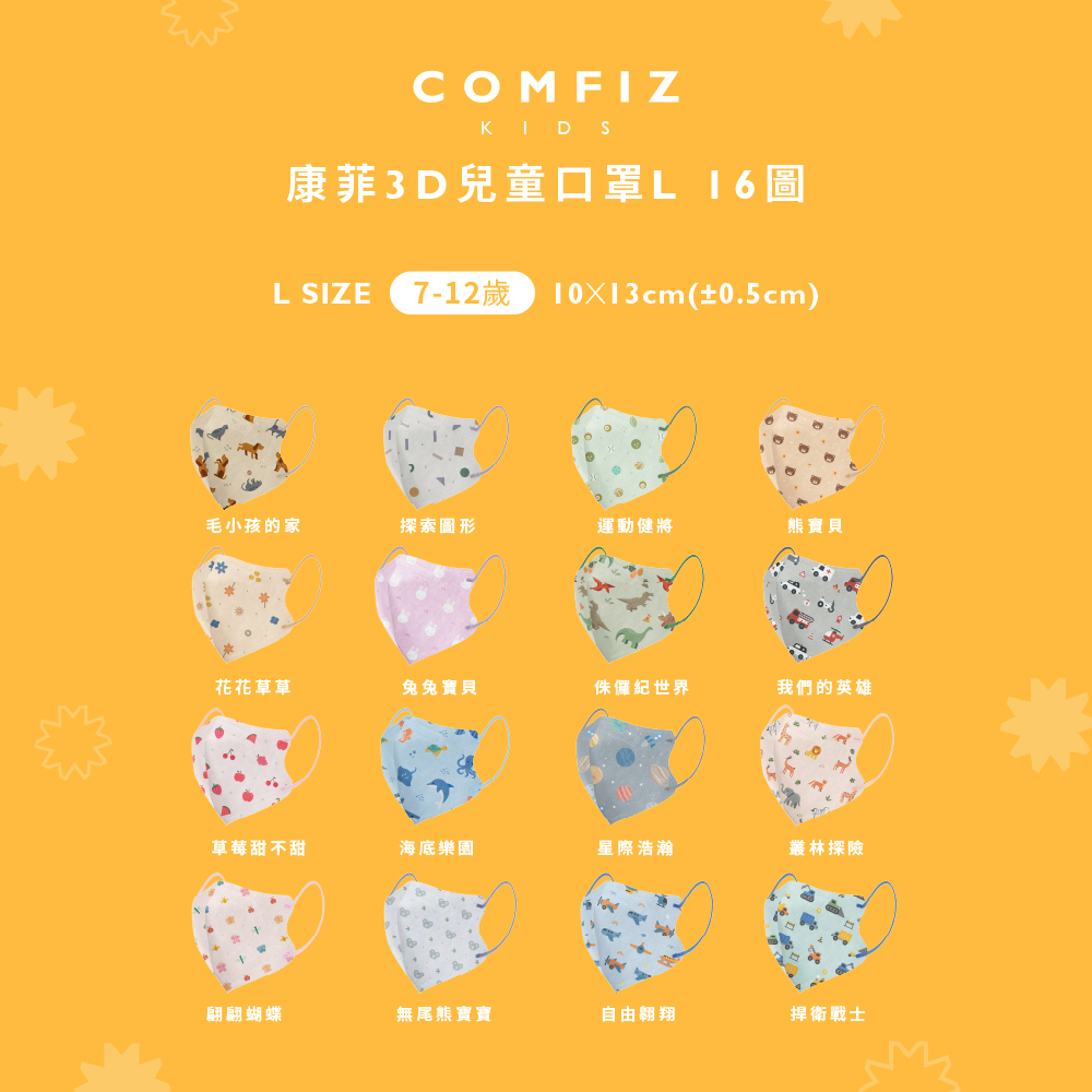 規格:兒童立體約 10 x 13 cm (±0.5cm) / 無鼻樑條