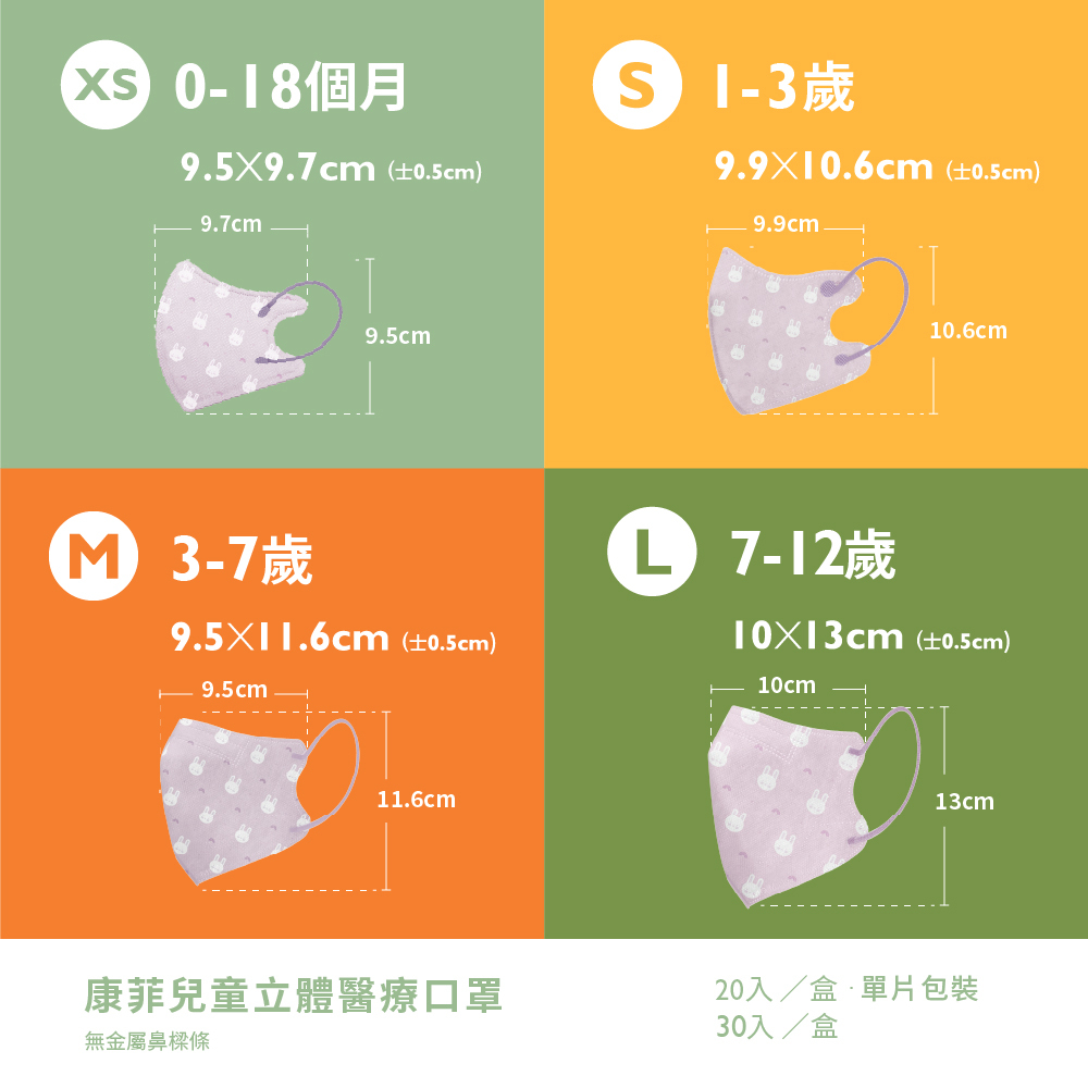 規格:兒童立體約 9.5 x 9.7 cm (±0.5cm) /無鼻樑條