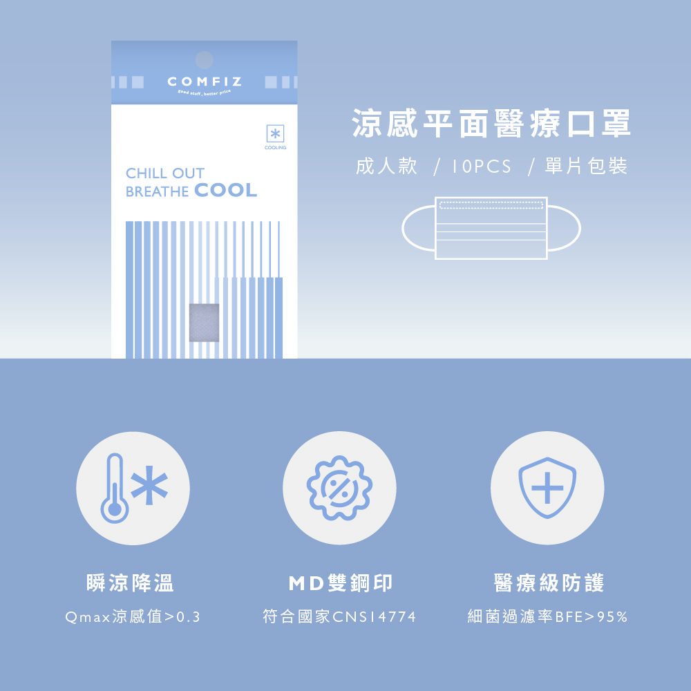 COMFIZ康菲 涼感平面醫療口罩(10入) - 沉穩黑