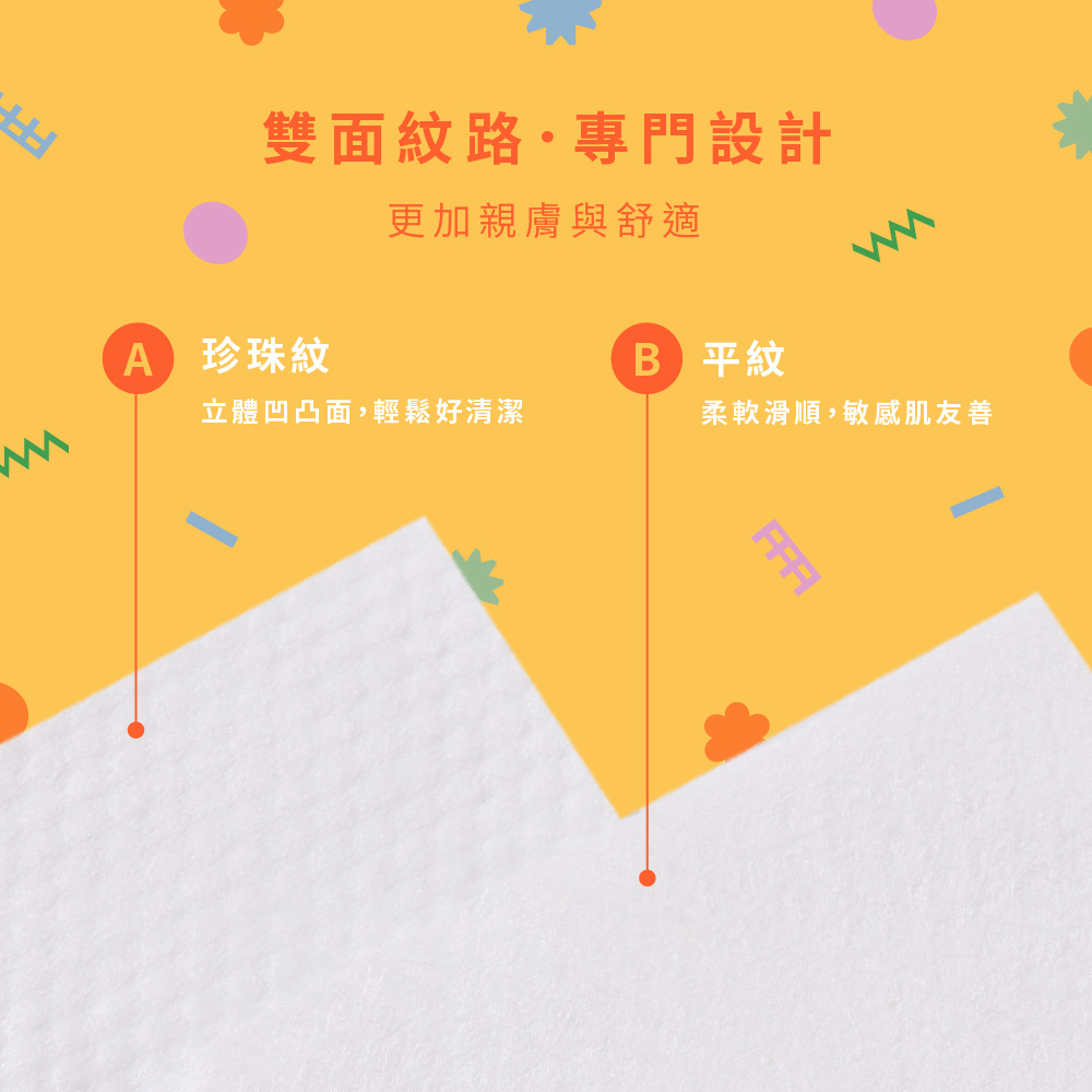 .雙面設計:珍珠紋用於卸妝清潔、平紋對敏感肌友善