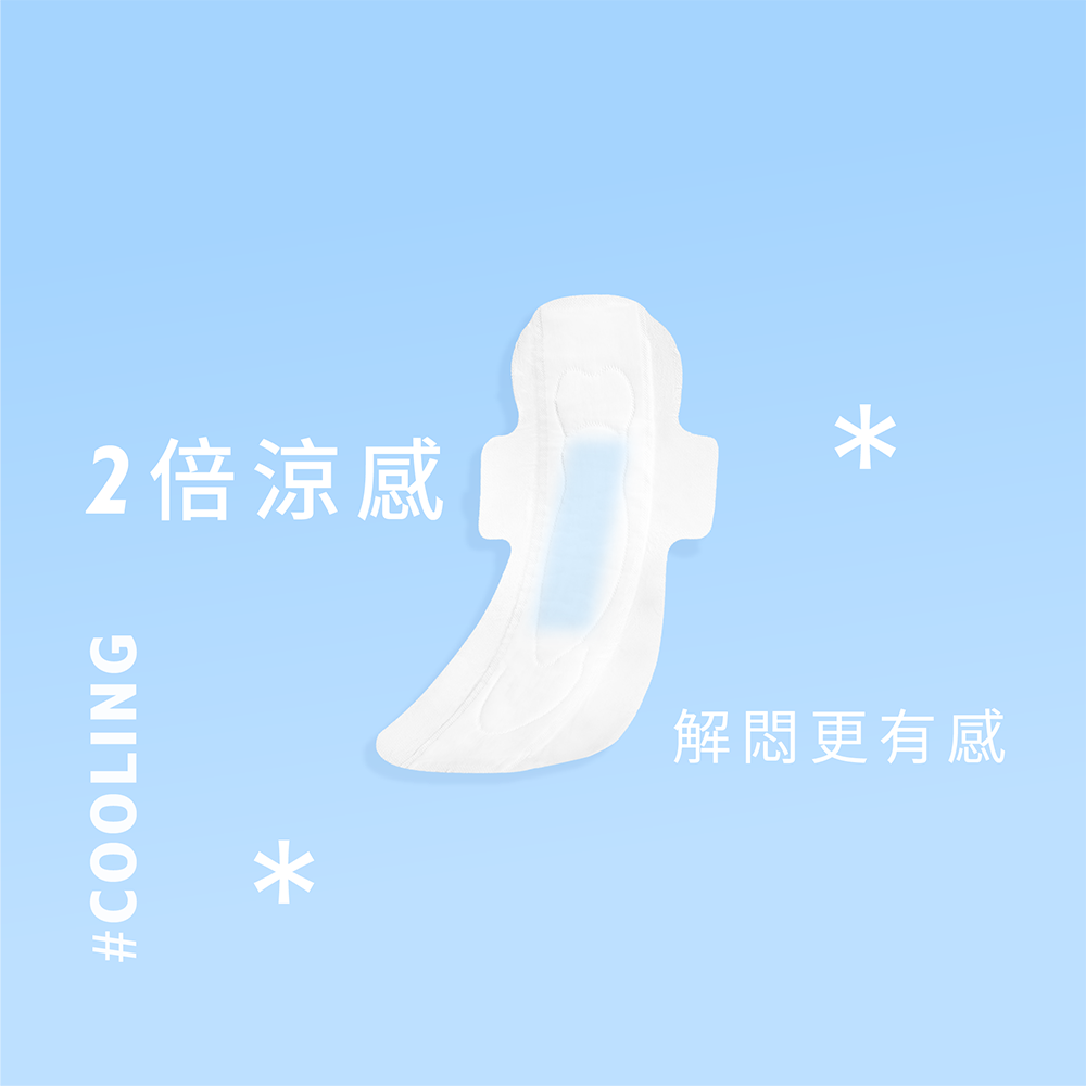 衛生棉 - 無紡布、涼感芯片、超薄SAP芯體、底膜、清凉薄荷分子、防水無紡布包膜